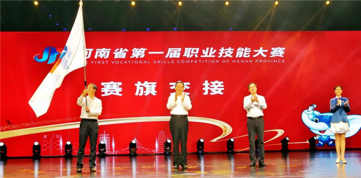 颁奖典礼结束后,河南省第二届职业技能大赛的举办城市也在现场揭晓,并进行了赛旗交接仪式。