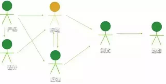 在一个典型的互联网公司的产品研发流程中,前端工程师和其他角色的关系大致上是这样的: