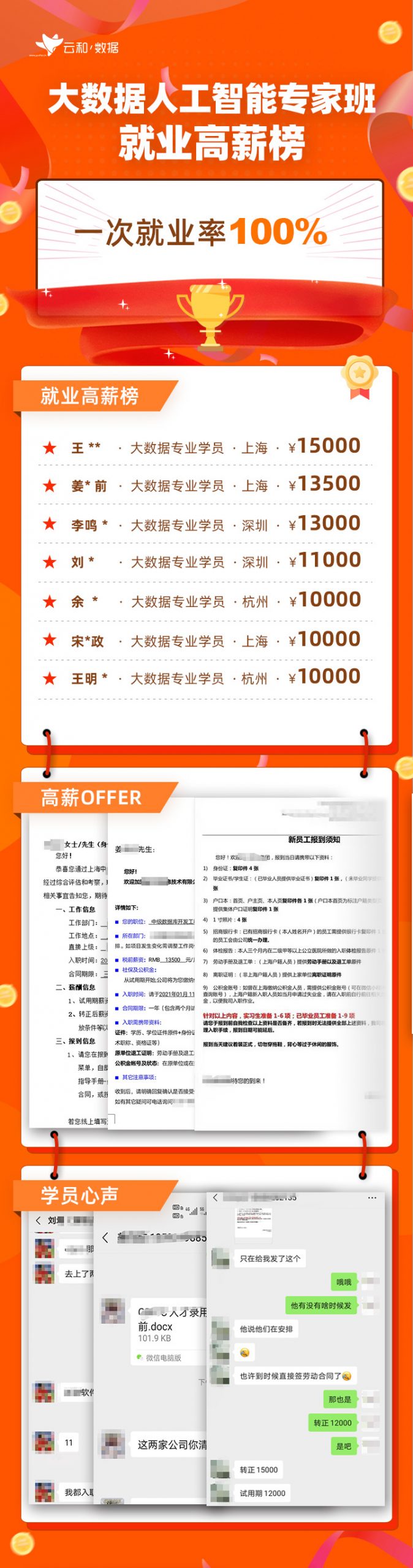 再创“薪”高:云和数据大数据人工智能专家班一次就业率100%!