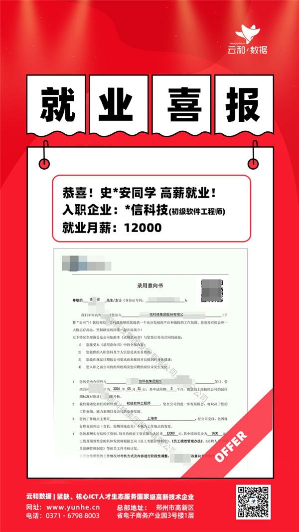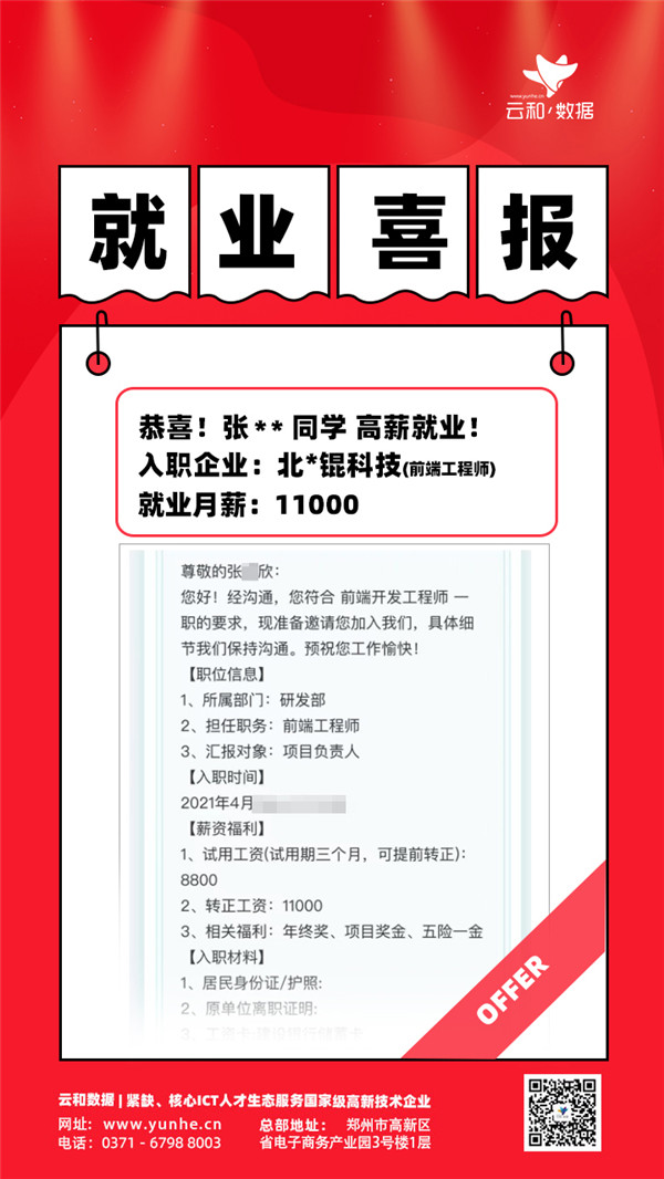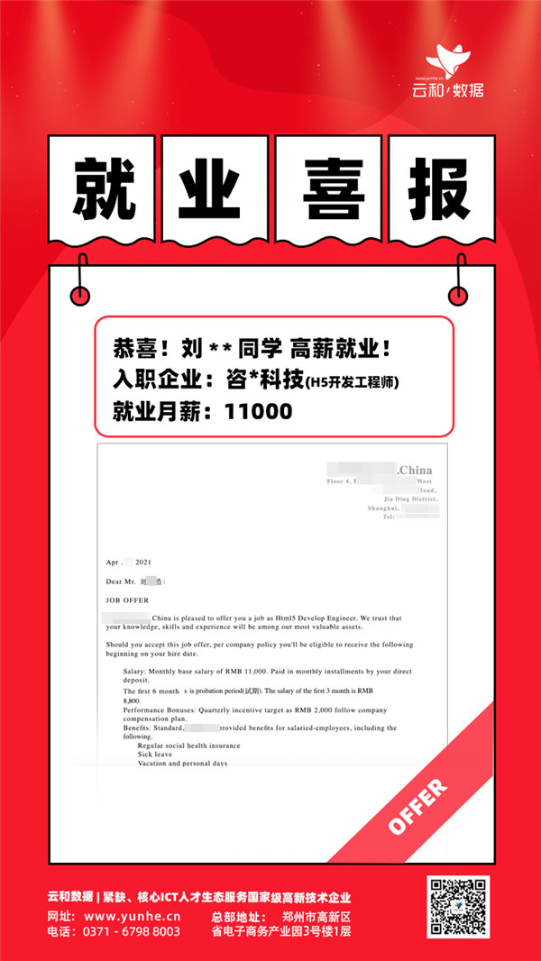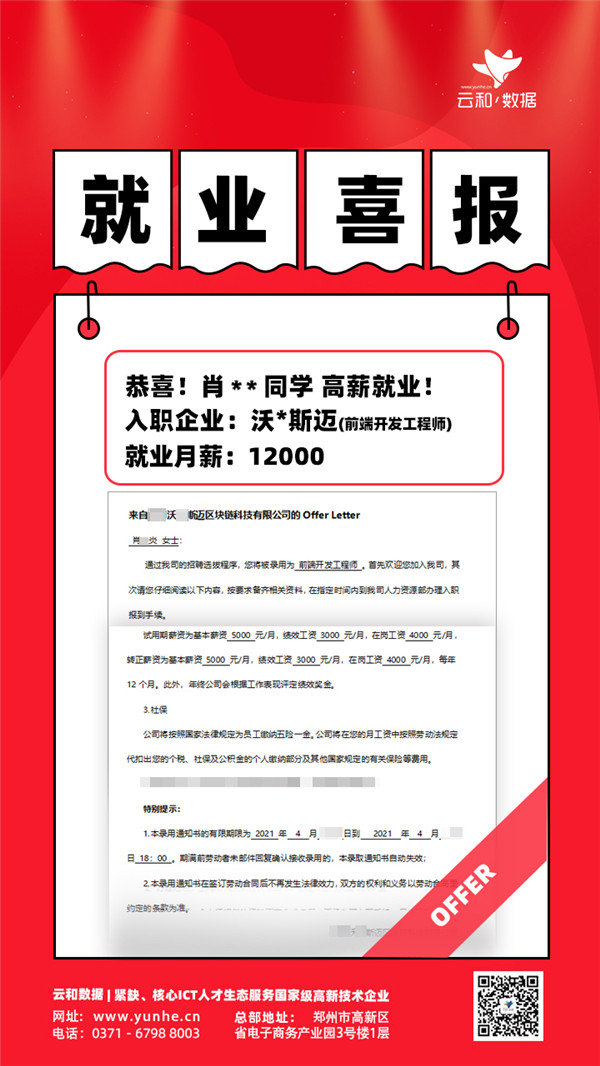 【云和数据更好的就业】努力永不过时,向前就有风景;千磨万击还坚劲,高薪offer走一程;云和数据的同学们都是最棒的!