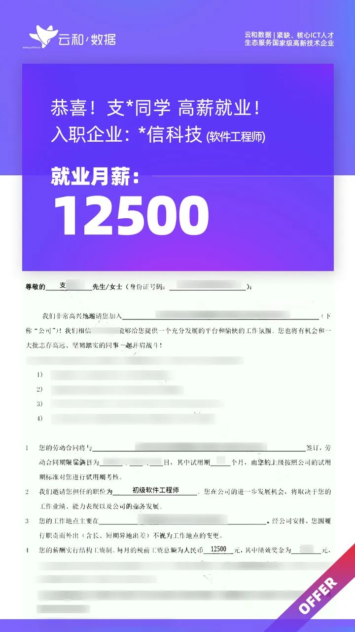 云和数据ICT职业教育发挥公司产业化优势与技术积淀,整合国内外优秀师资,累计自主研发140余项教辅、教材,115项实践教学实训平台,采用六位一体项目制教学模式,年培养高端ICT技术人才超10000人,其中线下ICT职业教育5500余人,累计为企业输送高端泛ICT技术人才超8万人,60%来自于口碑推荐。更大规模、更多人选择;更好的ICT学习、更好的就业。云和数据人才培养技术方向涵盖大数据、云计算、人工智能虚拟现实JAVA软件工程UI用户体验设计Web前端开发网络安全八大方向,云和数据以八大精品课程为基础,八大就业基地为依托,一次就业率99.02%,61.9%就业薪资超1W,以大数据为首的精品专业平均薪资13.25K。