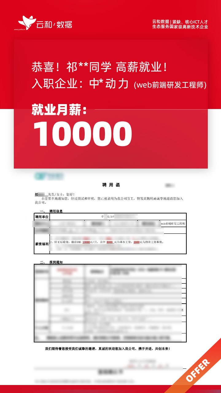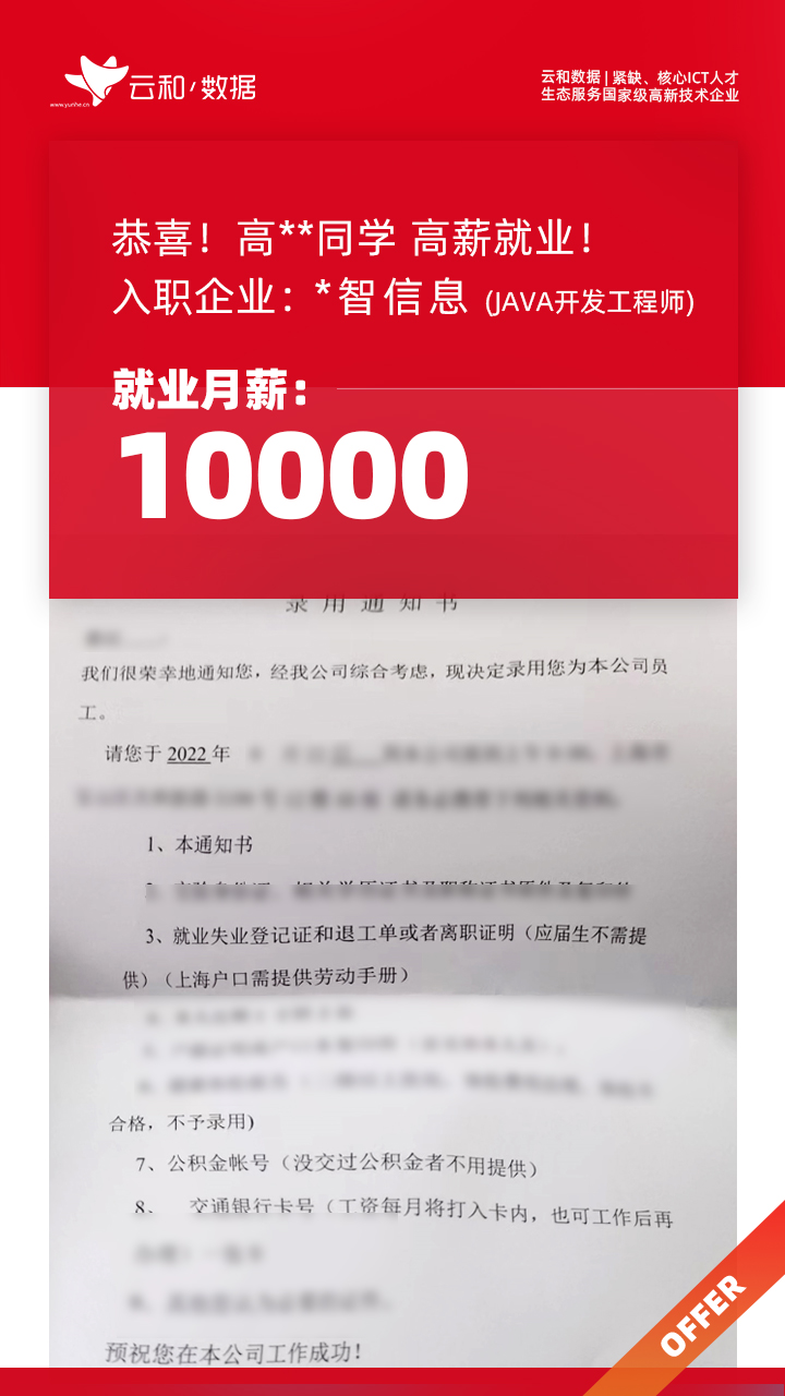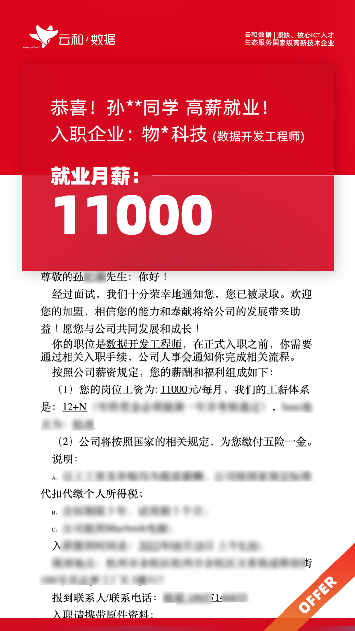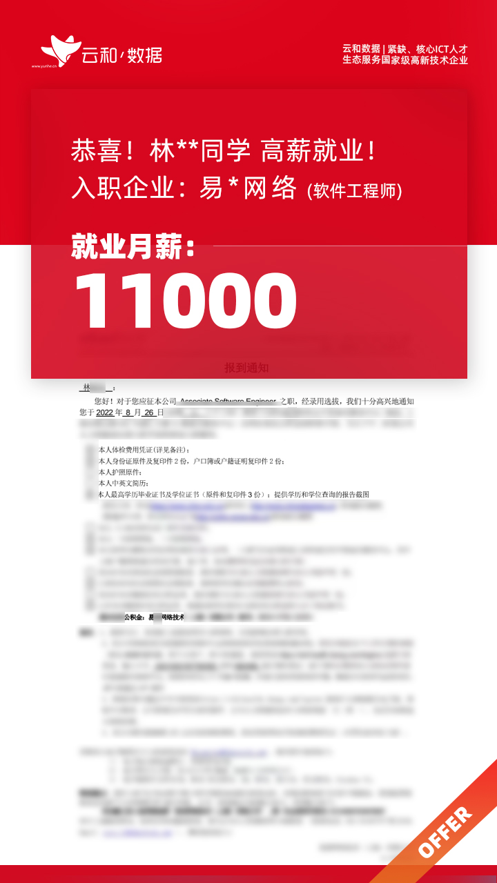 云和数据ICT职业教育发挥公司产业化优势与技术积淀,整合国内外优秀师资,累计自主研发140余项教辅、教材,115项实践教学实训平台,采用六位一体项目制教学模式,年培养高端ICT技术人才超10000人,其中线下ICT职业教育5500余人,累计为企业输送高端泛ICT技术人才超8万人,60%来自于口碑推荐。更大规模、更多人选择;更好的ICT学习、更好的就业。云和数据人才培养技术方向涵盖大数据、云计算、人工智能虚拟现实JAVA软件工程UI用户体验设计Web前端开发网络安全八大方向,云和数据以八大精品课程为基础,八大就业基地为依托,一次就业率99.02%,61.9%就业薪资超1W,以大数据为首的精品专业平均薪资13.25K。