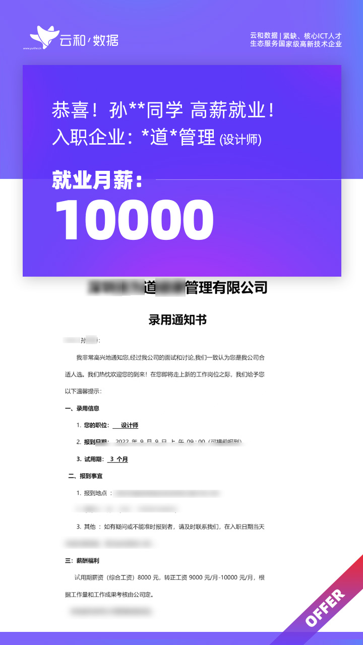 云和数据ICT职业教育发挥公司产业化优势与技术积淀,整合国内外优秀师资,累计自主研发140余项教辅、教材,115项实践教学实训平台,采用六位一体项目制教学模式,年培养高端ICT技术人才超10000人,其中线下ICT职业教育5500余人,累计为企业输送高端泛ICT技术人才超8万人,60%来自于口碑推荐。更大规模、更多人选择;更好的ICT学习、更好的就业。云和数据人才培养技术方向涵盖大数据、云计算、人工智能、虚拟现实、JAVA软件工程、UI用户体验设计、Web前端开发、网络安全八大方向,云和数据以八大精品课程为基础,八大就业基地为依托,一次就业率99.02%,61.9%就业薪资超1W,以大数据为首的精品专业平均薪资13.25K。