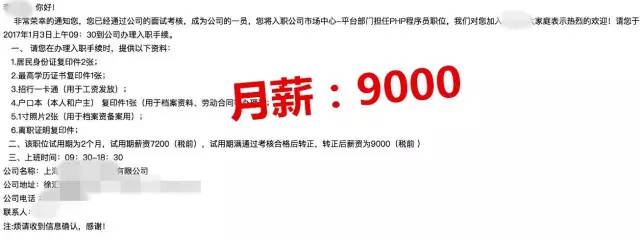 现在,我在上海**公司担任PHP开发工程师,月薪:9000元。有时候会跟同学开玩笑说自己能拿到高薪是因为运气好,但我清楚地知道自己完全是凭借实力入职的。在公司工作一段时间最大的感触就是:在云和学习的技术真的很实用呀。不过,自己是一枚新人,不管是专业技能和工作沟通方面,都有很大的进步空间。但我同时又对自己充满了自信,既然能够凭借自己的能力实现梦想,还有什么事情是做不到的呢?