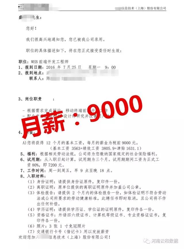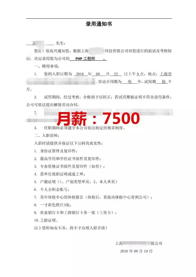 云和教育 PHP 高薪班毕业学员王*璐童鞋跨专业学 PHP 开发,最后成功就业,担任PHP开发工程师,入职月薪9000元!