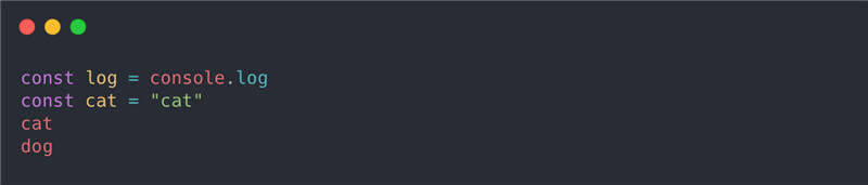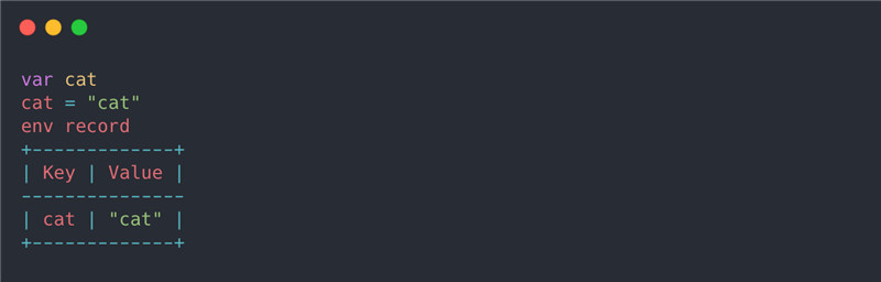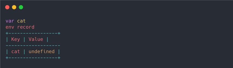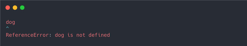 cat将返回”cat”,而dog将引发参考错误,因为在环境记录中找不到名称dog。