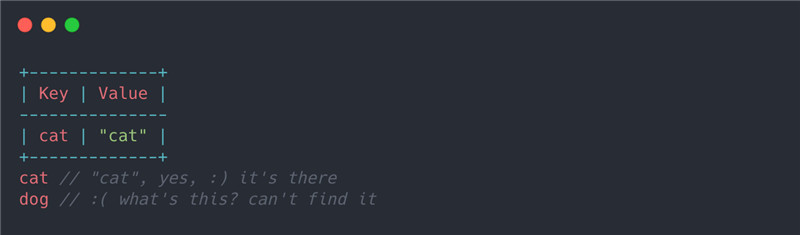 我们有一个变量cat初始化为”cat”。 接下来,我们参考cat变量和dog变量。 cat变量存在,而dog变量不存在。