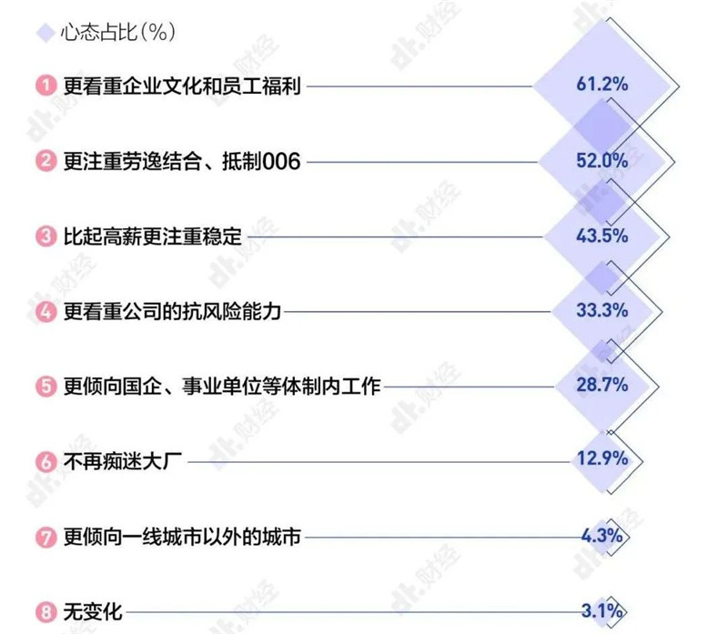 由于90后已经成为企业的中流砥柱,00后也即将入场,这届年轻人对于求职的心态也发生了极大的变化。