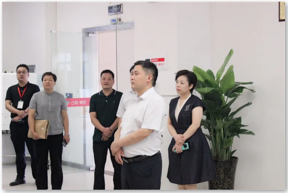 河南云和数据信息技术有限公司总经理郭凯、总经理助理姜顺、云和教育事业部副总经理李雨恒、云和教育事业部教务总监杨云振等领导对柳书记一行的到来表示热烈欢迎,并陪同参观。