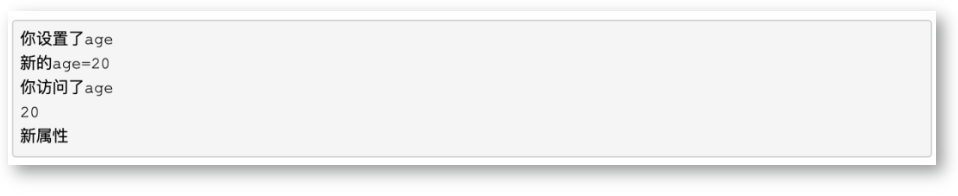 也就是无论访问对象的什么属性,之前定义的或是新增的属性,都会走到拦截中进行处理。这就解决了之前所无法监听的问题。