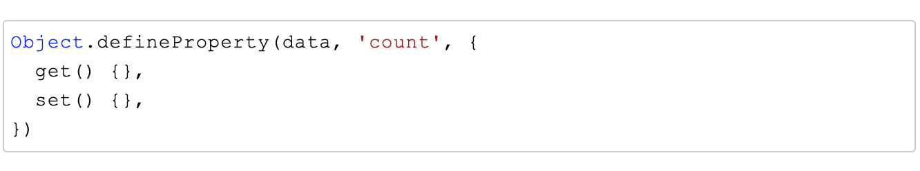 Vue2 中,对于给定的 data:如 { count: 1 },是需要根据具体的 key 也就是 count,去对 get 和 set 进行拦截,也就是: