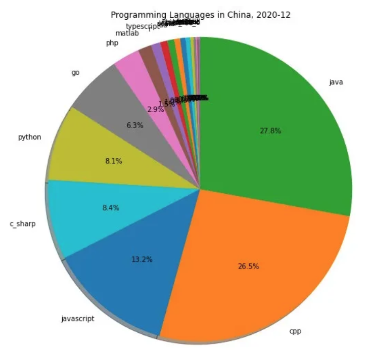排名 | 编程语言 | 平均工资 | 中位数 | 最低(95%) | 最高(95%) | 人数 | 百分比 |