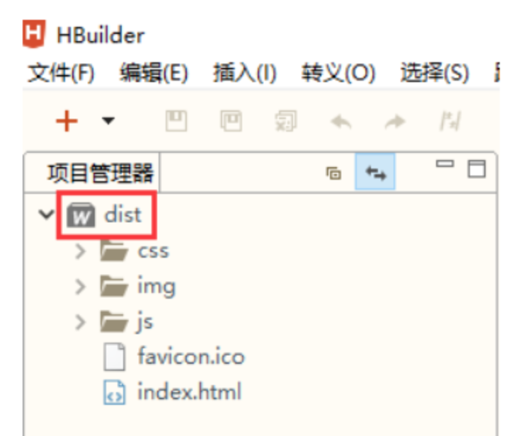 然后在Hbuilder中打开dist目录,我们可以得到下图