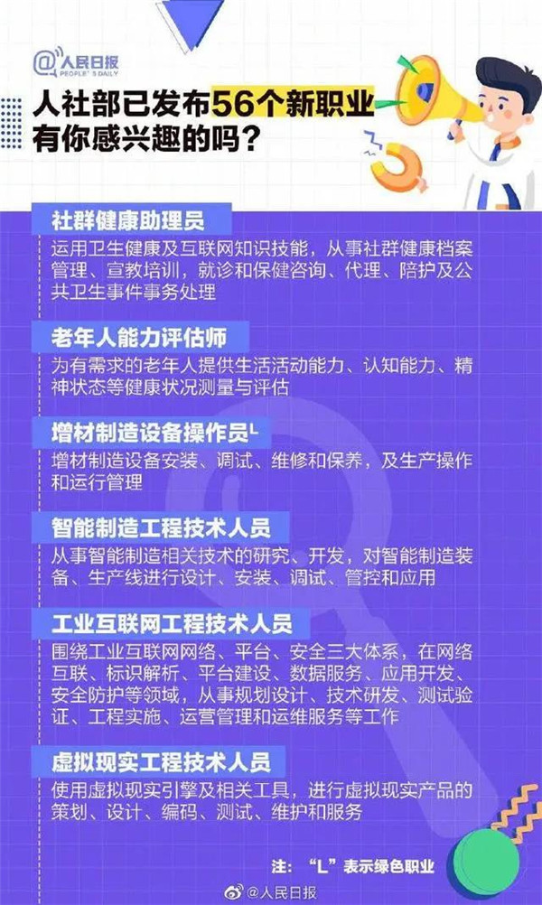 今年,人力资源社会保障部会同国家市场监督管理总局、国家统计局向社会正式发布了18个新职业信息。