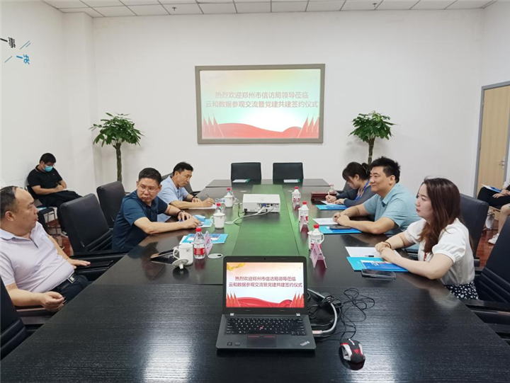 6月23日上午,郑州市信访局党组成员、副局长吴继军,市信访局副局长、市政协委员金爱江,市信访局党支部书记张恕耀等领导一行,莅临云和数据进行参观交流,并与公司党支部进行政企党建共建签约仪式,云和数据董事长、总经理郭凯,云和数据党支部书记薛燕清,云和数据行政中心经理程方陪同参观。