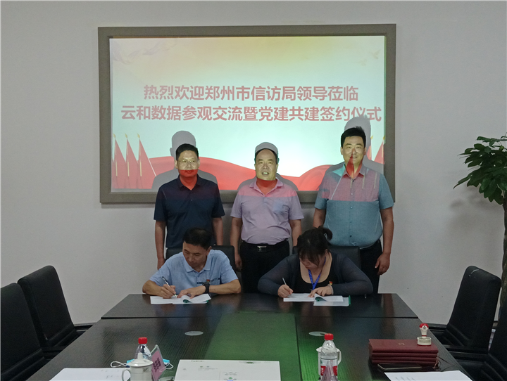 在座谈会结束后,市信访局党支部书记张恕耀,云和数据党支部书记薛燕清进行了党建共建签约,本次参观交流暨党建共建签约仪式圆满落幕。