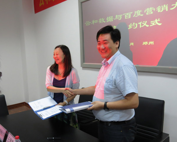 2014年8月12日,河南云和数据信息技术有限公司与百度营销大学签订协议。鉴于河南云和数据在院校合作领域的雄厚实力,且依托百度河南营销服务中心(河南锐之旗)广泛的客户基础及网络推广等市场经验,结合百度营销大学在人才培养、课程体系等方面的积累,双方的签约,必将开创河南互联网人才培养的新格局,为河南互联网行业发展注入新的活力。