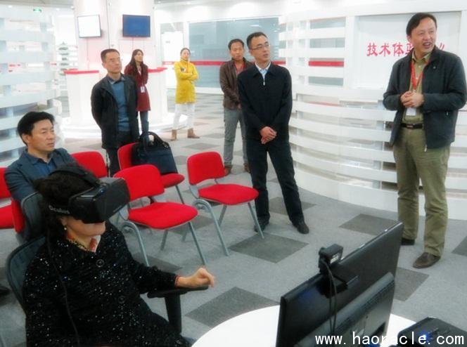 在陈总的引导下,宋局长一行来到云和技术体验中心,听取了有关Unity前沿技术应用方面的讲解,并亲身体验了公司基于Unity3D开发的最新技术——虚拟现实“过山车”。