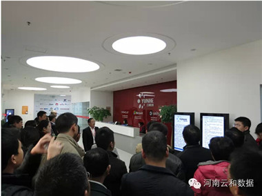 2014年12月19日。名企联盟群象岛30余名知名企业家莅临河南省电子商务产业园参观并对技术管理等方面进行交流。河南锐之旗董事长李少杰先生、河南云和数据信息技术有限公司COO王小石先生现场陪同,并由COO王小石先生现场讲解公司概况和最新IT发展方向和产品。