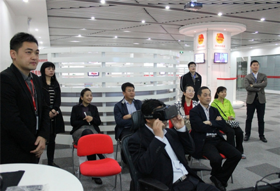 在云和数据邢经理的引领下,考察团来到云和技术体验中心,听取了有关Unity前沿技术应用方面的讲解,并亲身体验了云和数据基于Unity 3D 开发的旅游行业虚拟现实技术应用。