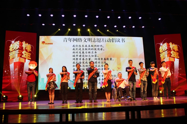 2015年4月29日上午9点30分,由中共郑州市委宣传部、郑州市文明办、共青团郑州市委员会、郑州市互联网信息办公室联合主办的“用青春为郑州点赞”郑州市网络青年榜样颁奖活动在郑州市青少年宫举行。河南云和数据总经理郭凯先生获“郑州市青年榜样”奖,云和数据旗下云和学院获“网络文明志愿者“奖。来自社会各界的知名企业代表、知名博主、网友代表、媒体记者、青年学生等1000多人共同见证了这一激动人心的时刻。