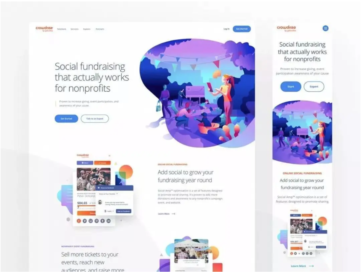 这是近两年较火的设计大趋势之一,从登陆页面到整个网站,插画在各个地方都留下了痕迹,像是网页设计的冲击。