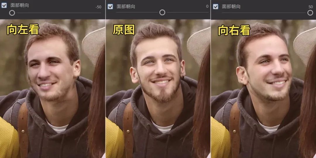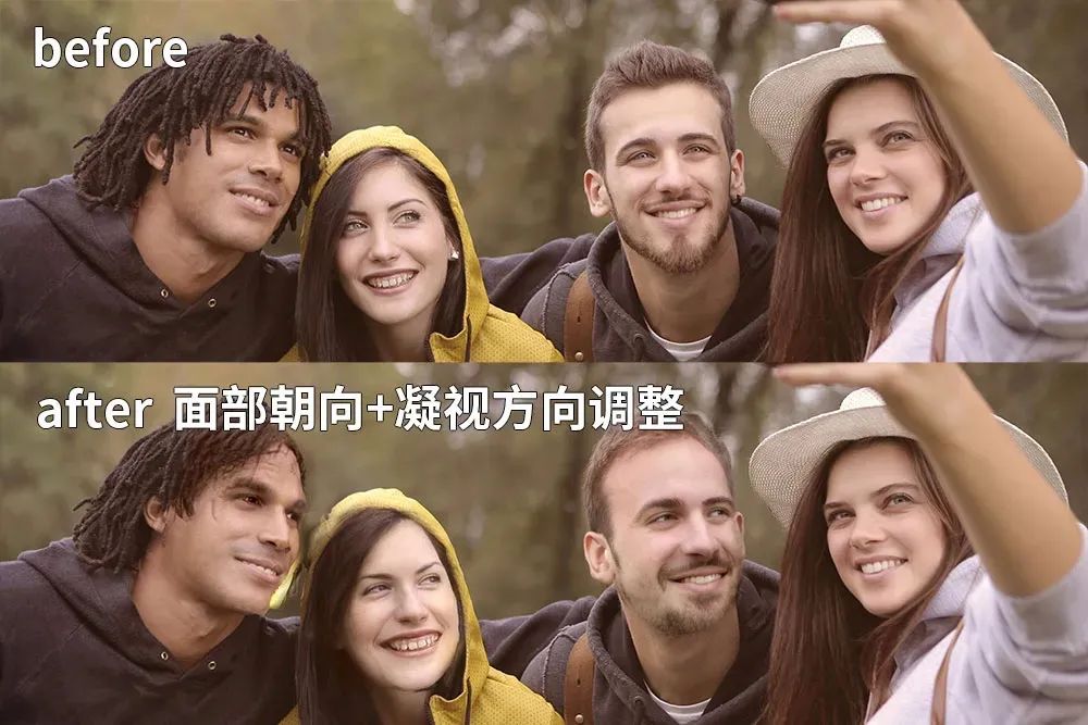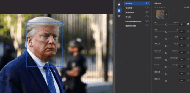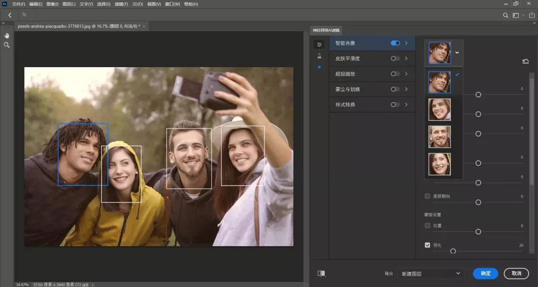 数秒过后,照片当中的四个人物就会被人工智能一个不漏地识别想要对谁的面部进行编辑点击右侧头像在下拉菜单当中切换就行