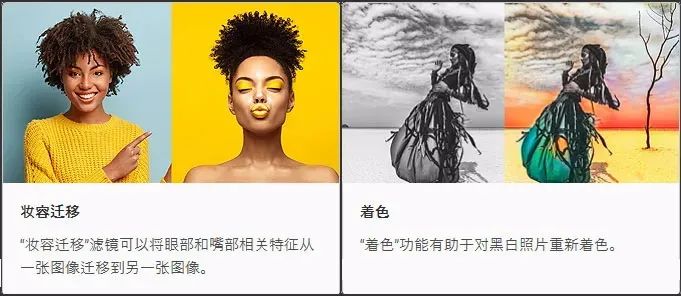 比如已经进入测试阶段的,就有:妆容迁移、黑白照片上色