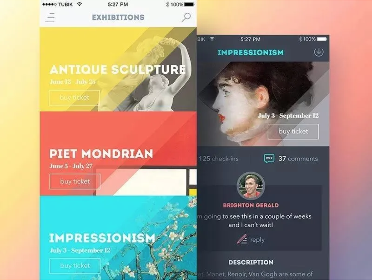 获得灵感并将灵感转化为设计的最好方法就是观察艺术。经典艺术,现在艺术,数字艺术。水彩画,油画,炭画,水粉画。任何一种艺术都能吸引设计师的共鸣。艺术在颜色的选择和应用的角度都非常有效,当然也都特别有创意。在你喜欢和欣赏的艺术家的作品中寻找灵感是非常有帮助的。获得灵感,并尝试想象你在设计的作品就是一件艺术品,结果不仅对客户,甚至是你自己的提升都是惊人的。