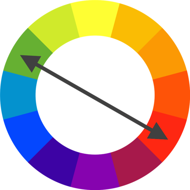 它们对比强烈,可以用来吸引观众的注意力。 当使用互补色方案时,重要的是选择主色并且使用其互补色用于强调。 例如,当人眼看到一块不同色调的绿色物体时,一点红色就会很突出。