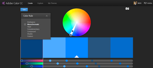 Adobe Color CC,以前称为Kuler,能让选择色彩变得非常容易。只需点击几下鼠标,调色板上的每种色彩都可以单独修改或选择为基础色彩。